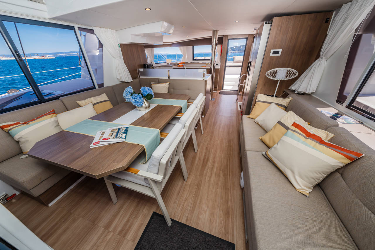 As it is the case with bigger BALI models, the BALI 4.6 offers an impressive amount of daylight in its interior. The big opening windows provide an unbeatable amount of fresh air and a panoramic view of the surroundings, while the hull windows bring additional ventilation. Its technical equipment will satisfy even the most demanding sailors, and the most demanding cooks. In the front part of the salon you will find a modern and fully equipped kitchen that enables you to cook with a sea view.Practicality: Unique level of self sufficiency for a 40 foot catamaran.